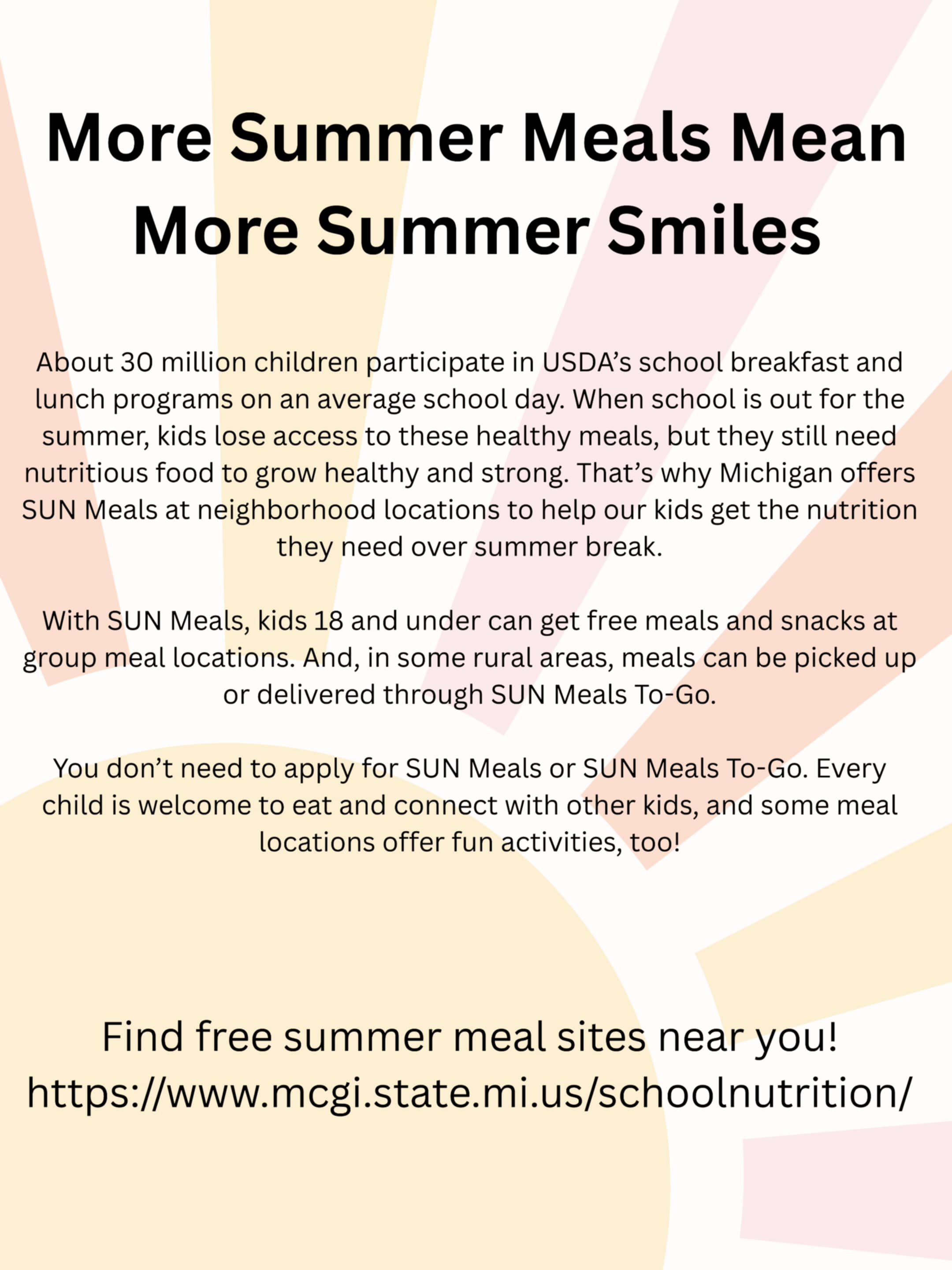 We are excited to offer FREE breakfast and lunch to all students at Caseville Schools for the 2025-2026 school year. This includes ONE FREE breakfast and lunch each day to ALL students. Second meals and ala carte purchases will be charged and a positive balance in the Mealtime account is required.